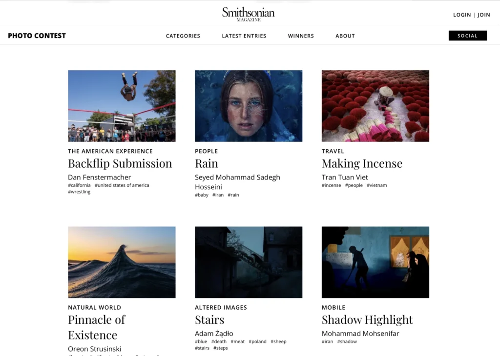 His ability to blend technical precision with emotional narrative has earned him over 250 domestic and international awards, including: Wikimedia Photo of the Year; Sony World Photography Awards, Smithsonian Magazine Photo Contest (2 times winner), World’s Best Photo (Architecture, Eyes & Fun) by Agora; Travel Photographer of the Year & Environmental Photographer of the Year.